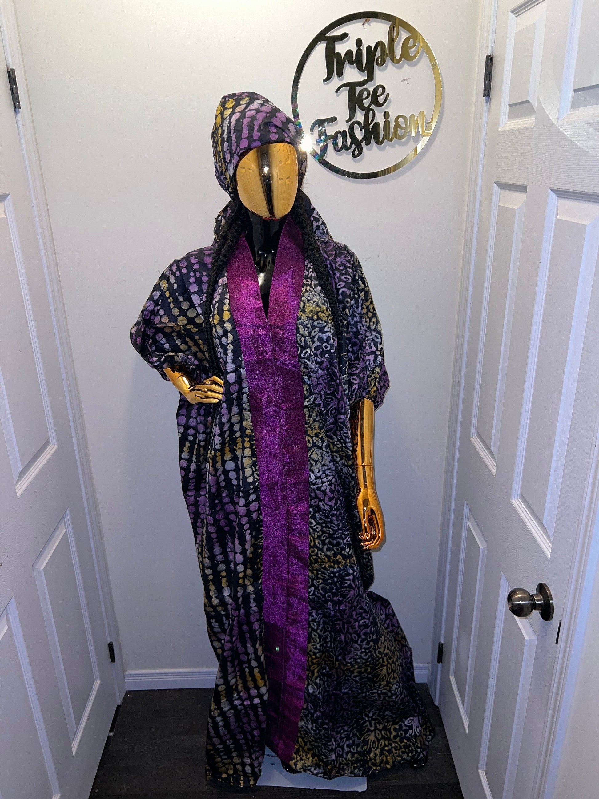 Our stunning Adire boubou, a fusion of traditional Nigerian textiles and contemporary elegance. Crafted with meticulous attention to detail, this exquisite garment features a mesmerizing combination of Adire fabri, celebrating the rich heritage of Nigerian craftsmanship.