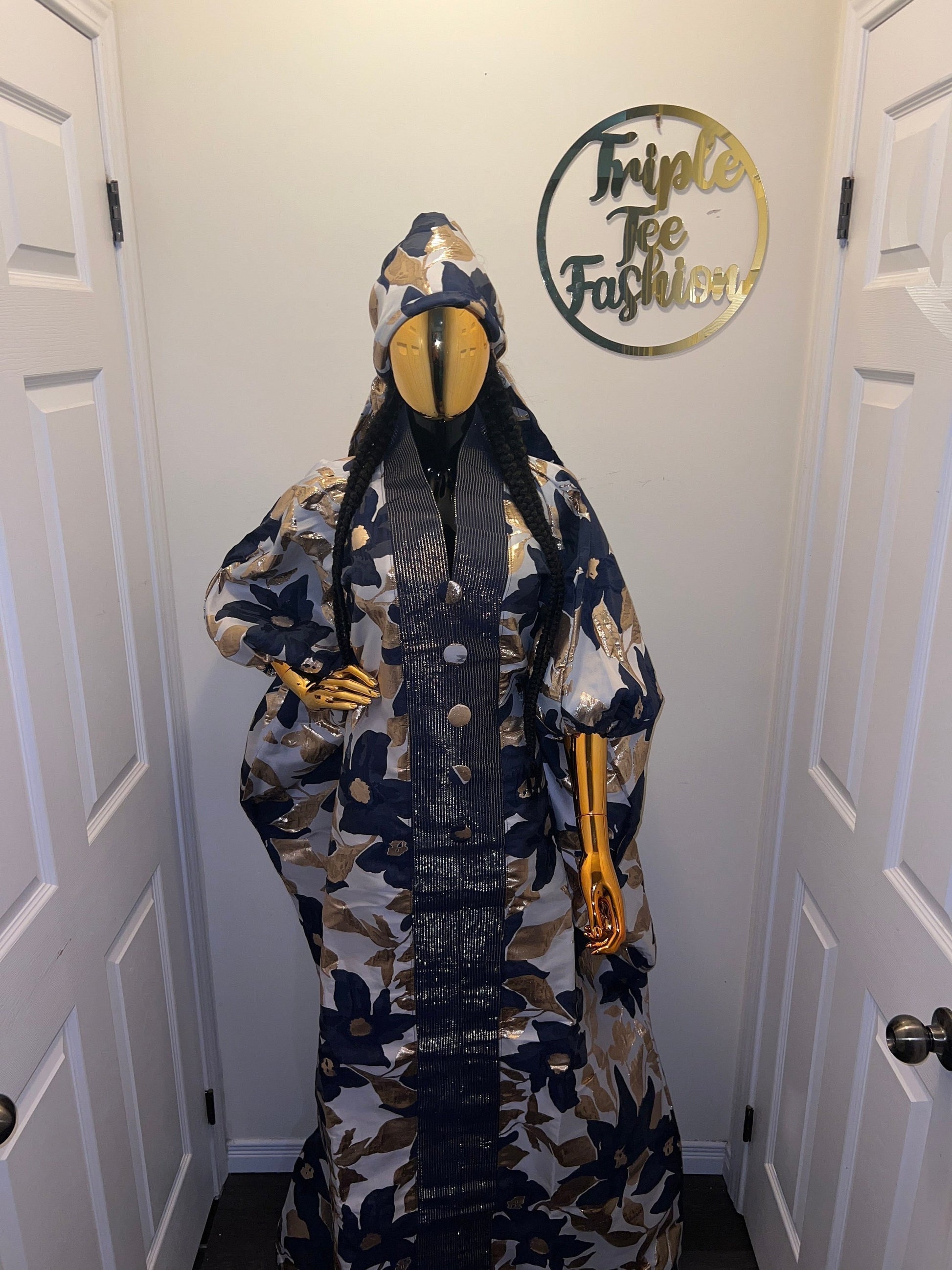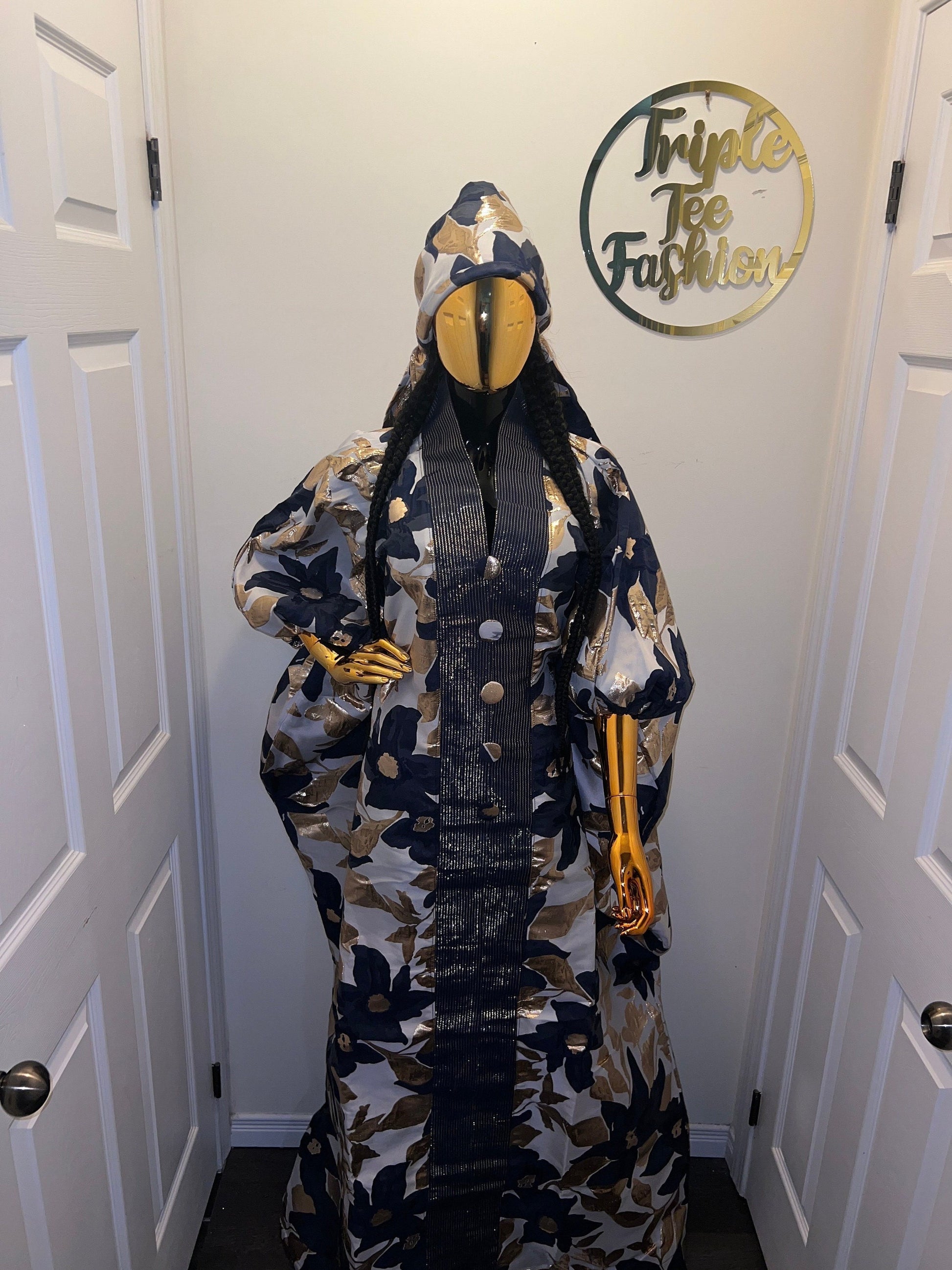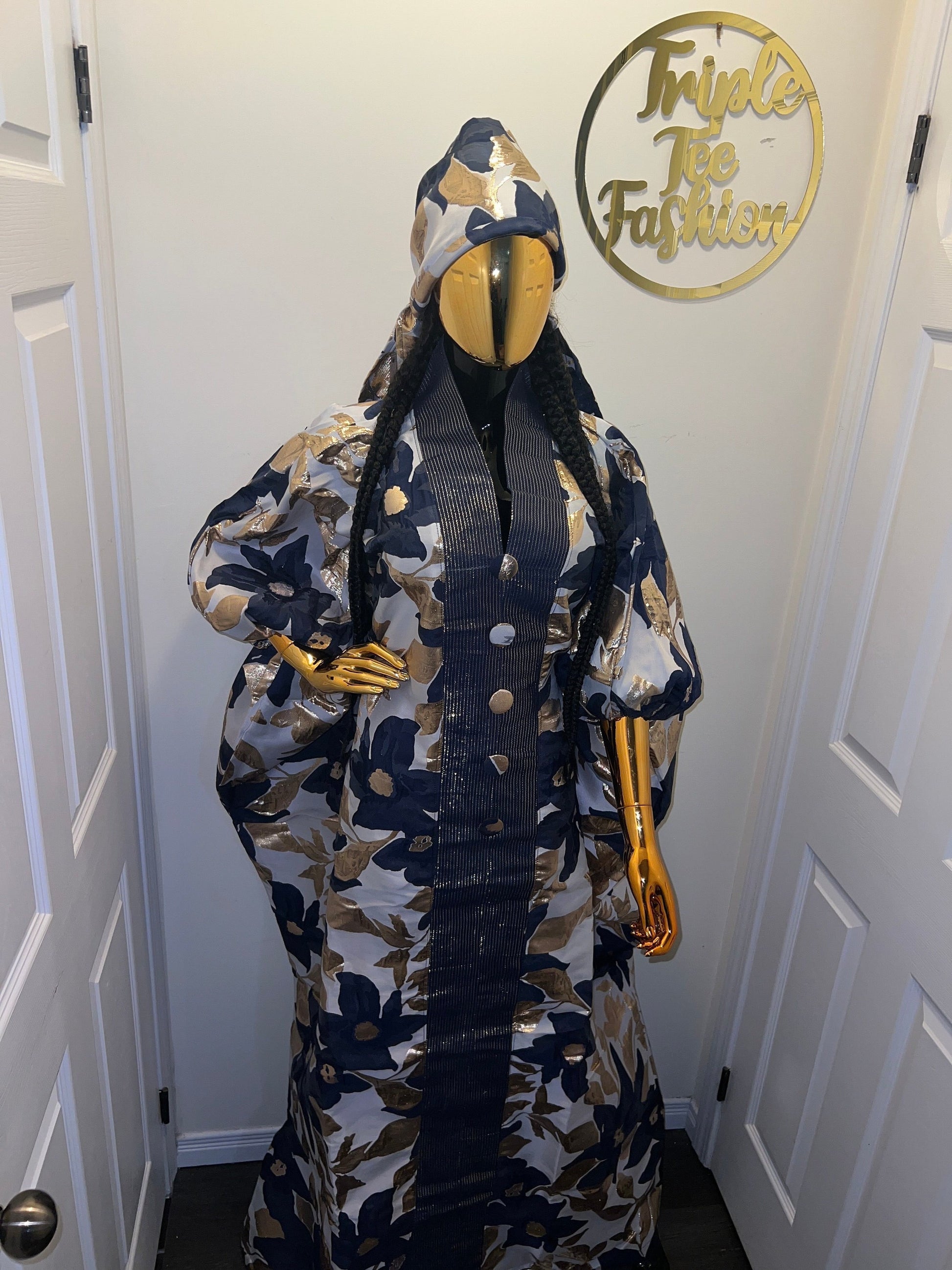 This lovely luxury would give you that “RICH AUNTY VIBEZZ”. Made with luxurious high quality European brocade and African aso oke in the middle. You need to feel and see the richness in this outfit. One size fits everyone. free size for US size 6 to 24. It has an inner belt to make it fit for everyone. Ready-To-Wear and Ready-To-Ship. Length available is 60 inches . Comes with a scarf to match Fabric Description: Brocade fabric is a luxurious, shimmering material that can look like embroidered cloth. It is a class of richly decorative shuttle-woven fabrics, often made in coloured silks and sometimes with gold and silver threads. Here are simple tips for European brocade care: ****************************************** *Hand wash with cold water and bar soap. *For machine wash, wash separately with cold water and mild detergent on a delicate cycle. * Iron on Low Heat: If needed, iron on a low heat setting. Overall, the key to maintaining brocade fabric is to handle it gently and avoid any harsh chemicals, excessive heat, or moisture. Note: • Before Shipment, We Carefully Inspect Our Item Due To Human Error Or Any Other Unwanted Condition. What you order is the exact item we would send you. If You Are Not Satisfied With Our Product Please Let Us Know Before Writing Negative Remarks. We Like To Keep 100% Customer Satisfaction.