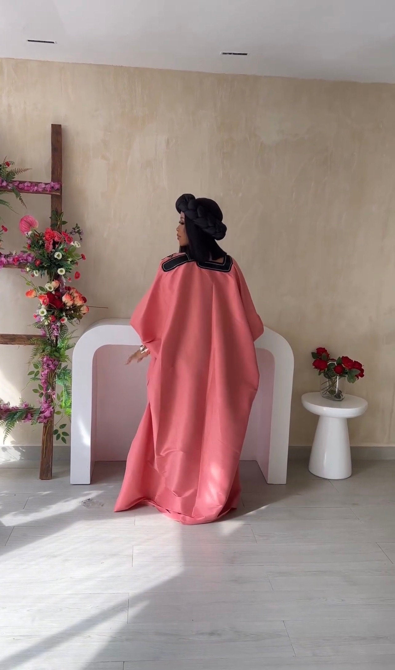 Crafted from luxurious mikado silk, this boubou offers a combination of comfort and style, perfect for special occasions or formal gatherings. The long embroidery on the neck enhances the traditional aesthetic of the kaftan, making it a standout piece in any wardrobe.