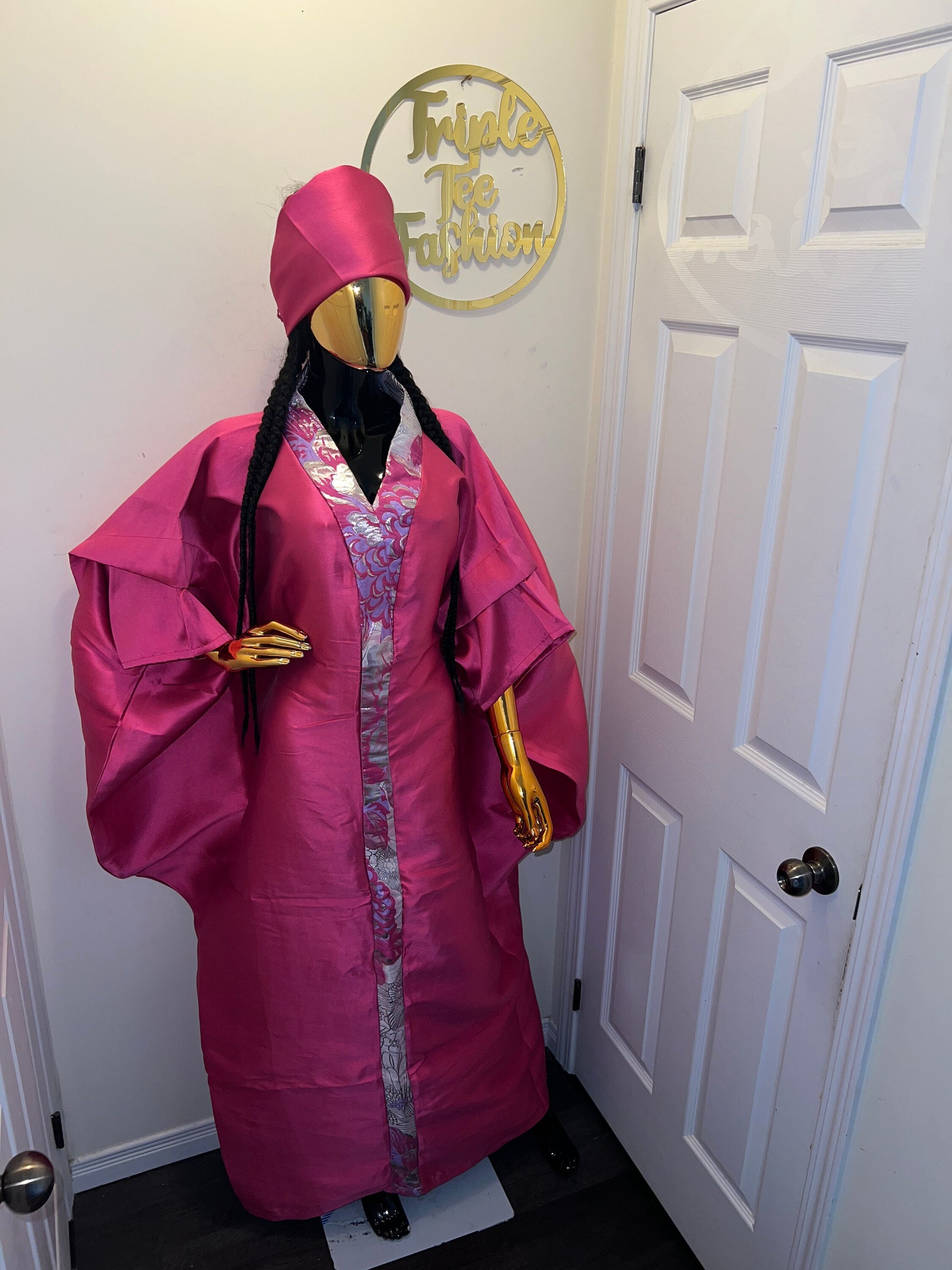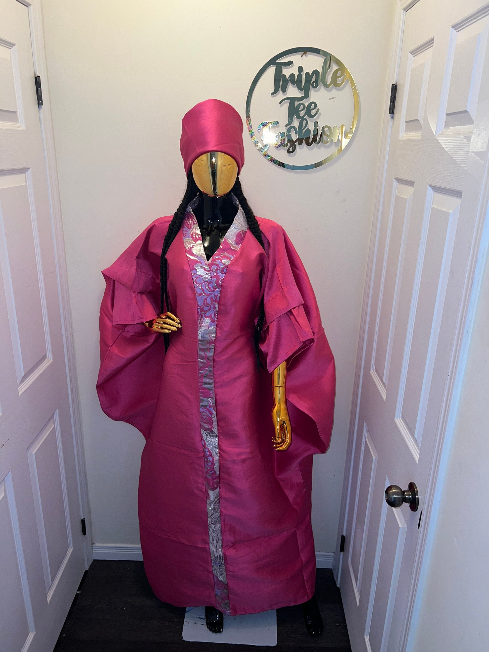 This boubou is a Luxury redefined. The celebrant worthy royal piece! One of our bestseller design! Our exquisite Mikado silk boubou, a pinnacle of elegance and luxury. Crafted from premium Mikado silk fabric and European Brocade in the middle, renowned for its lustrous sheen and smooth texture, this boubou exudes sophistication and refinement.